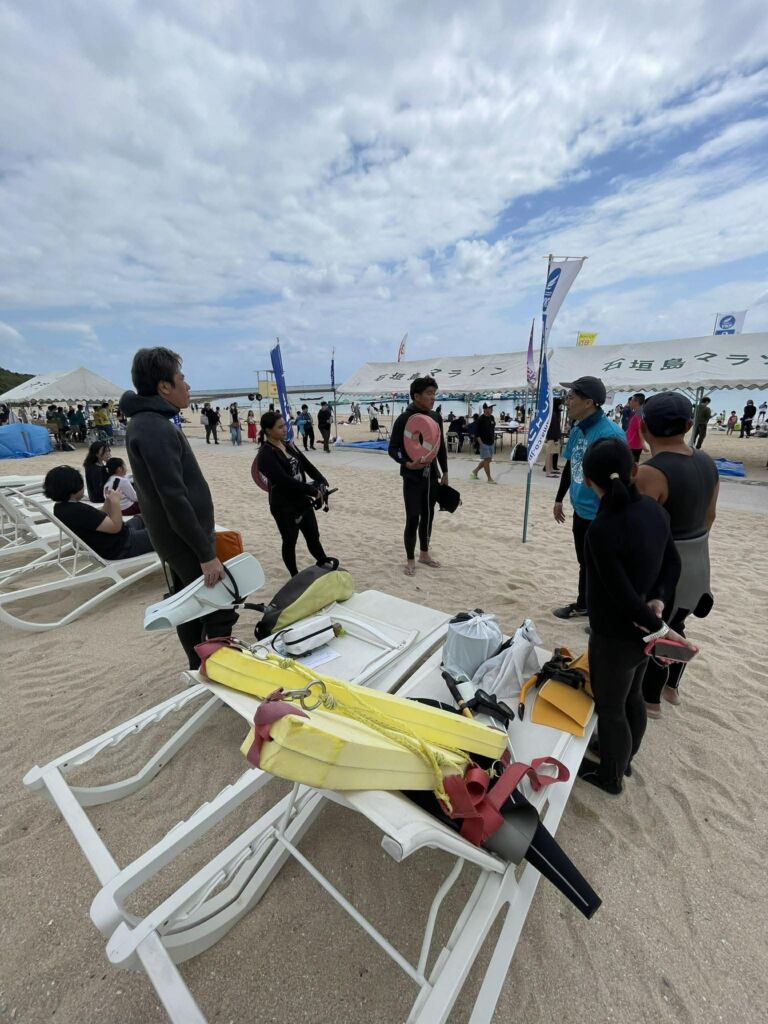 八重山ダイビング協会からは、海びらき宣言やテープカットの後に行われる初泳ぎの水面監視スタッフとして、6名の協会員がボランティアで参加致しました。